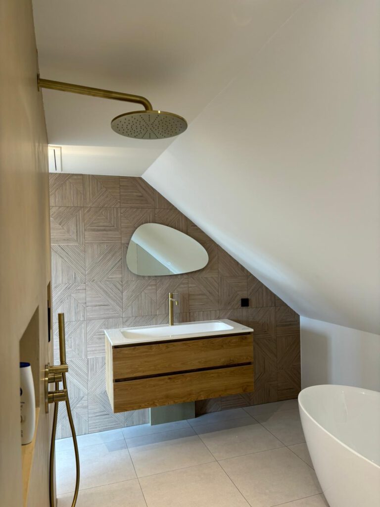Van zolderkamer naar een stijlvolle slaapkamer met badkamer en suite! Deze transformatie laat zien hoe een ongebruikte ruimte kan veranderen in een luxe en functioneel geheel. Het resultaat is een prachtige, lichte slaapkamer die rust en comfort uitstraalt, gecombineerd met een moderne badkamer die van alle gemakken is voorzien.